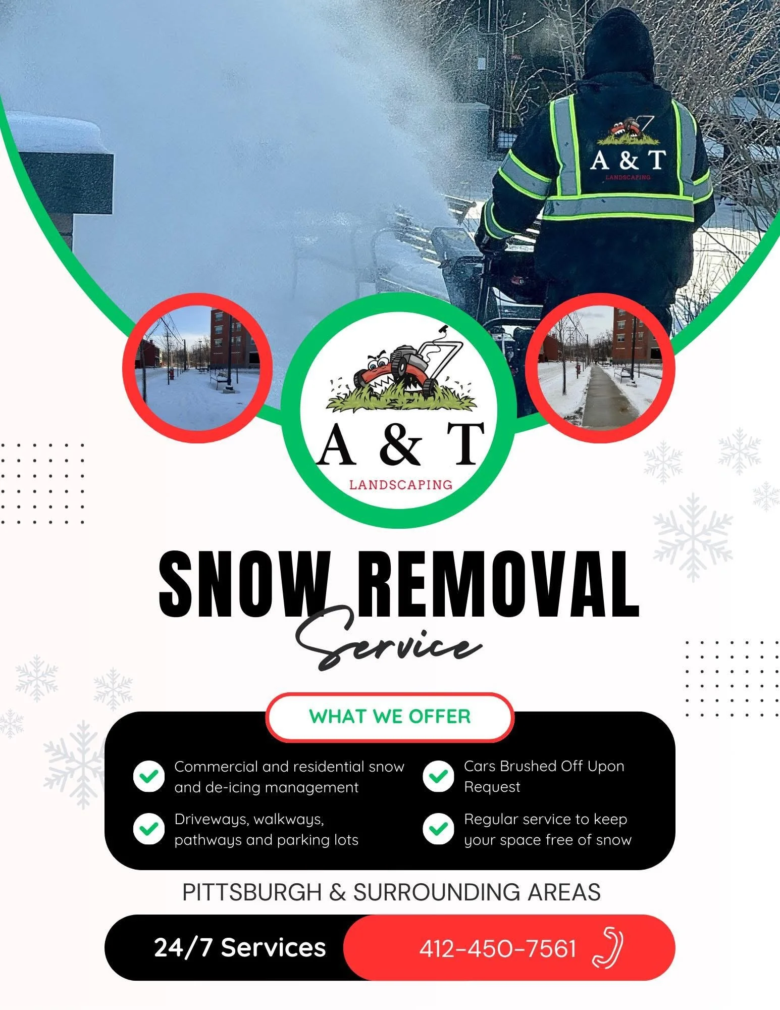 We proudly serve the Pittsburgh area and understand how unpredictable winter weather can be. That’s why we focus on clear communication, dependable service, and fair pricing so you’re never left guessing. When winter weather hits, A & T Landscaping LLC is ready. We provide reliable, timely snow removal services to keep your property safe, accessible, and stress-free during snow events.